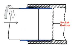 3. Assemble the pipe and fitting while the surface is wet. Rotate the ppe up to 1/4 turn, and push in to the socket until it reaches to the bottom of the socket.
