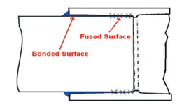 4. The interference fit design allows the pipe and fitting to fuse together. The bond is created in the loose section of the joint. Joint strength develops as cement dries.